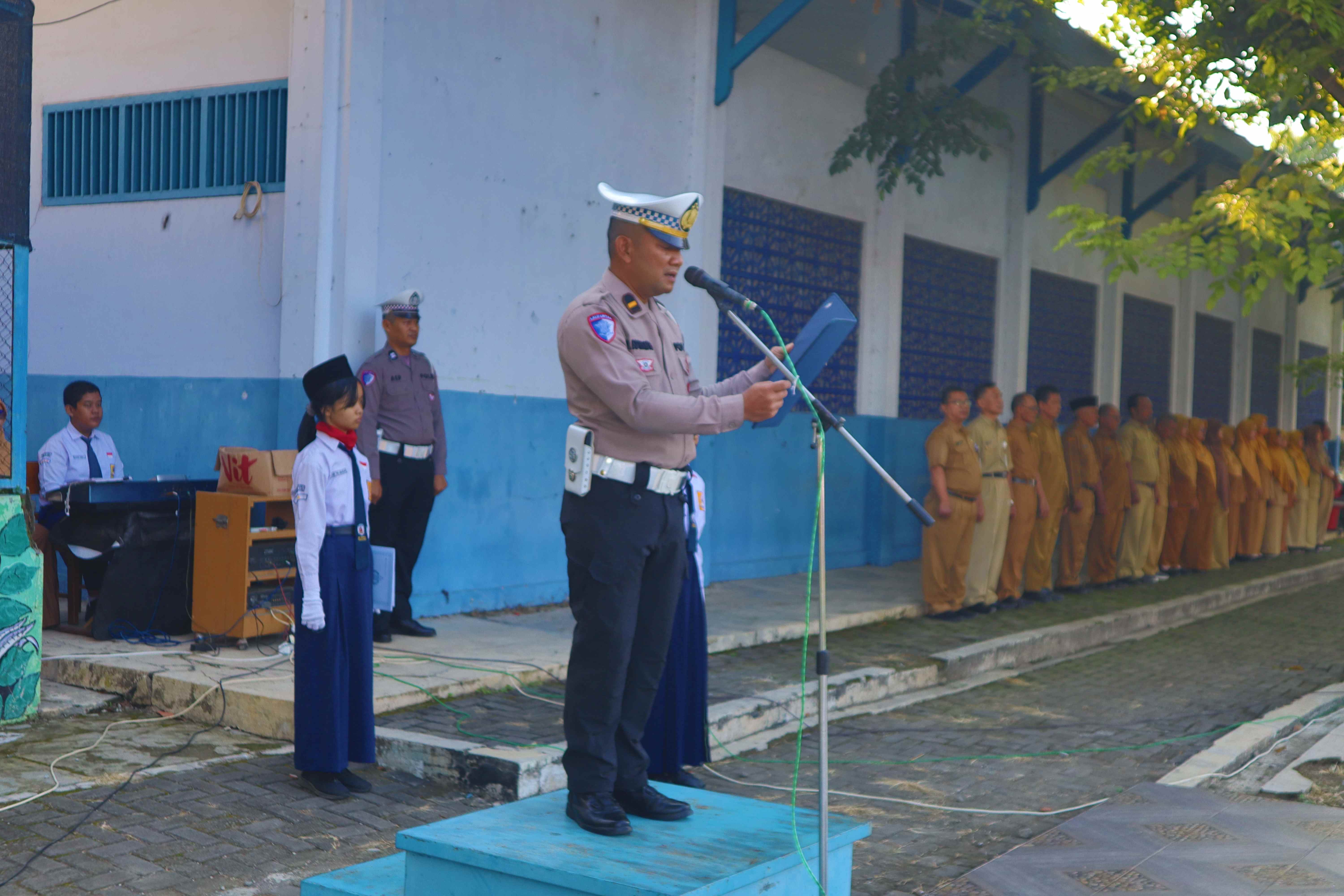 “Police Go To School Satlantas Polres Pemalang di SMPN 2 Pemalang : Edukasi keselamatan berkendara & hadiah helm SNI.”..