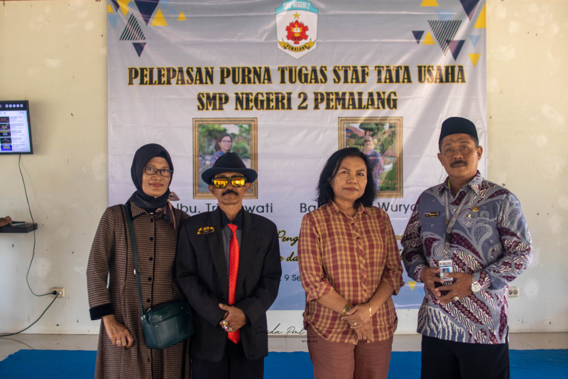 SMP Negeri 2 Pemalang menyampaikan apresiasi setinggi-tingginya atas dedikasi dan kontribusi yang diberikan selama ini. Sembari memasuki masa pensiun yang layak, kami mendoakan Bapak Yuli Wuryanto dan Ibu Tri Suswati memiliki masa depan yang penuh kesehatan dan kebahagiaan abadi. (Ihsan)